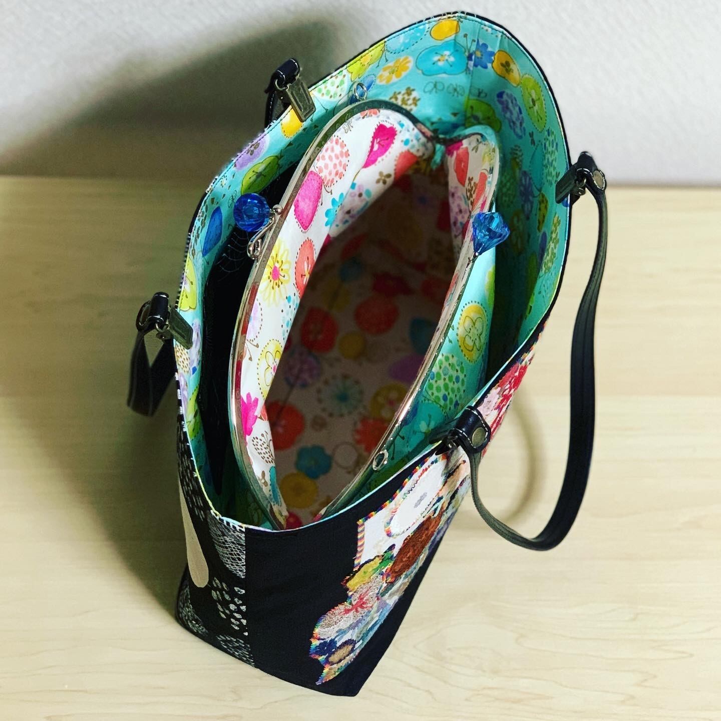 花園に迷い込んだクロッチ♪がま口トートバッグ❤︎