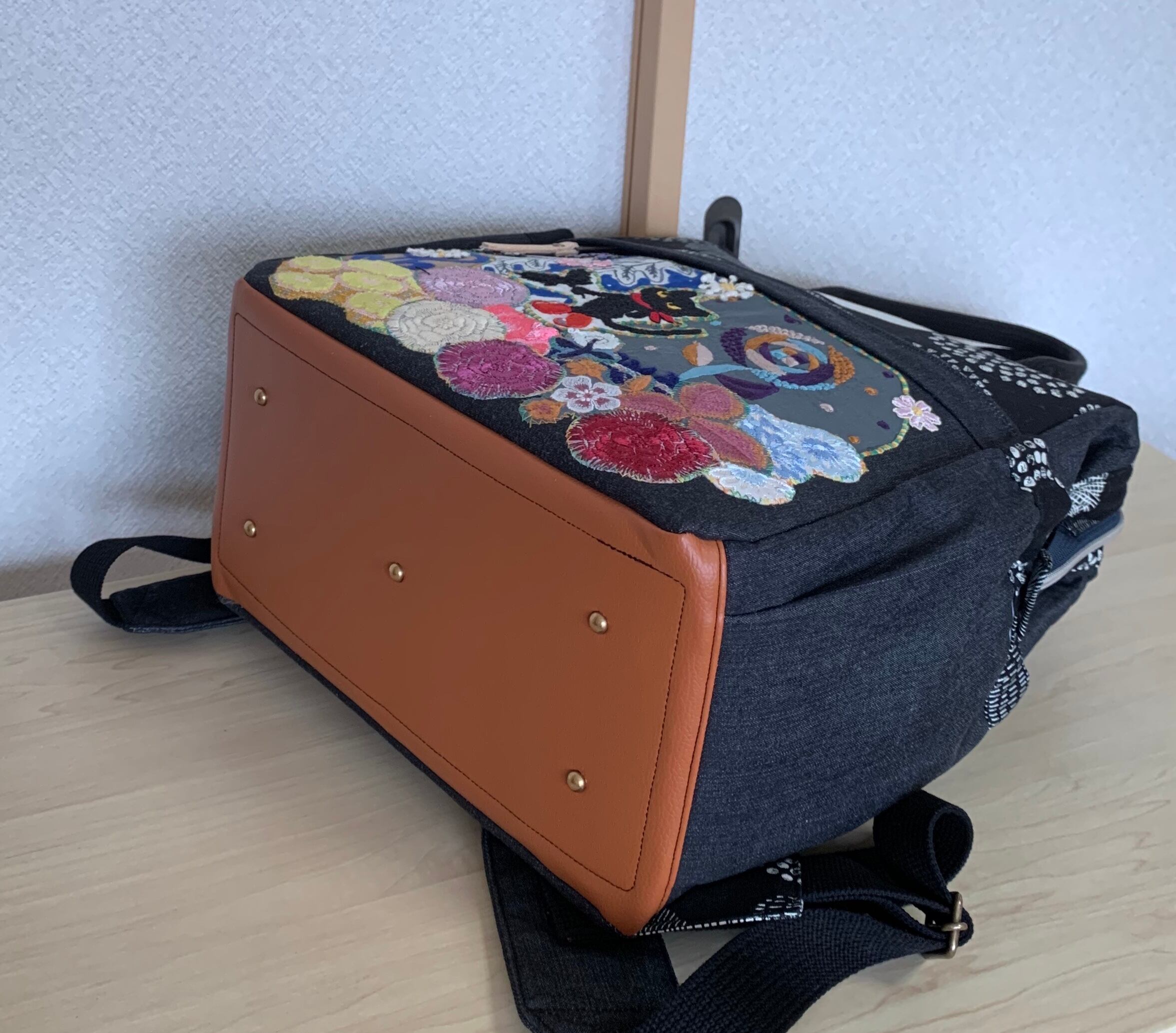 サンドローズの森をお散歩♪クロッチ★ミナペルホネン・PJC等刺繍生地コラージュアネロリュック♪