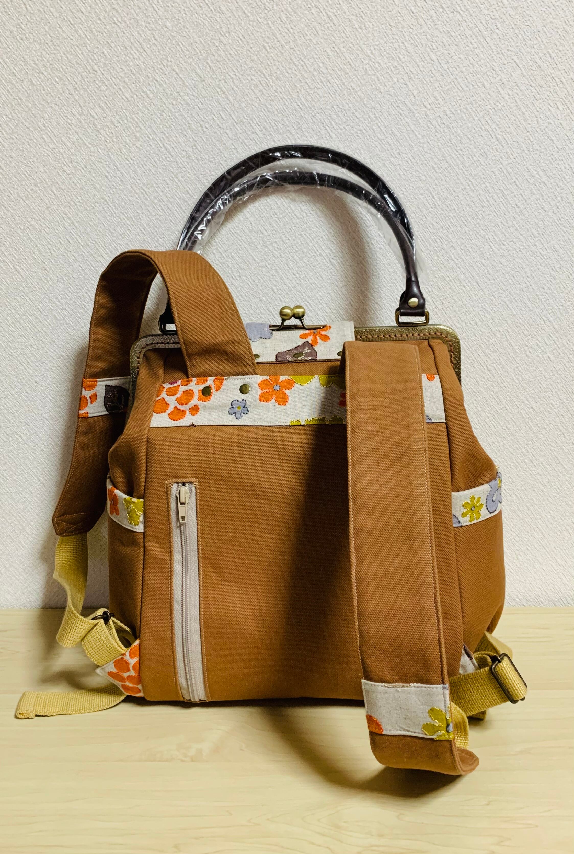ひと針ひと針丁寧にステッチングした★がま口リュック♪