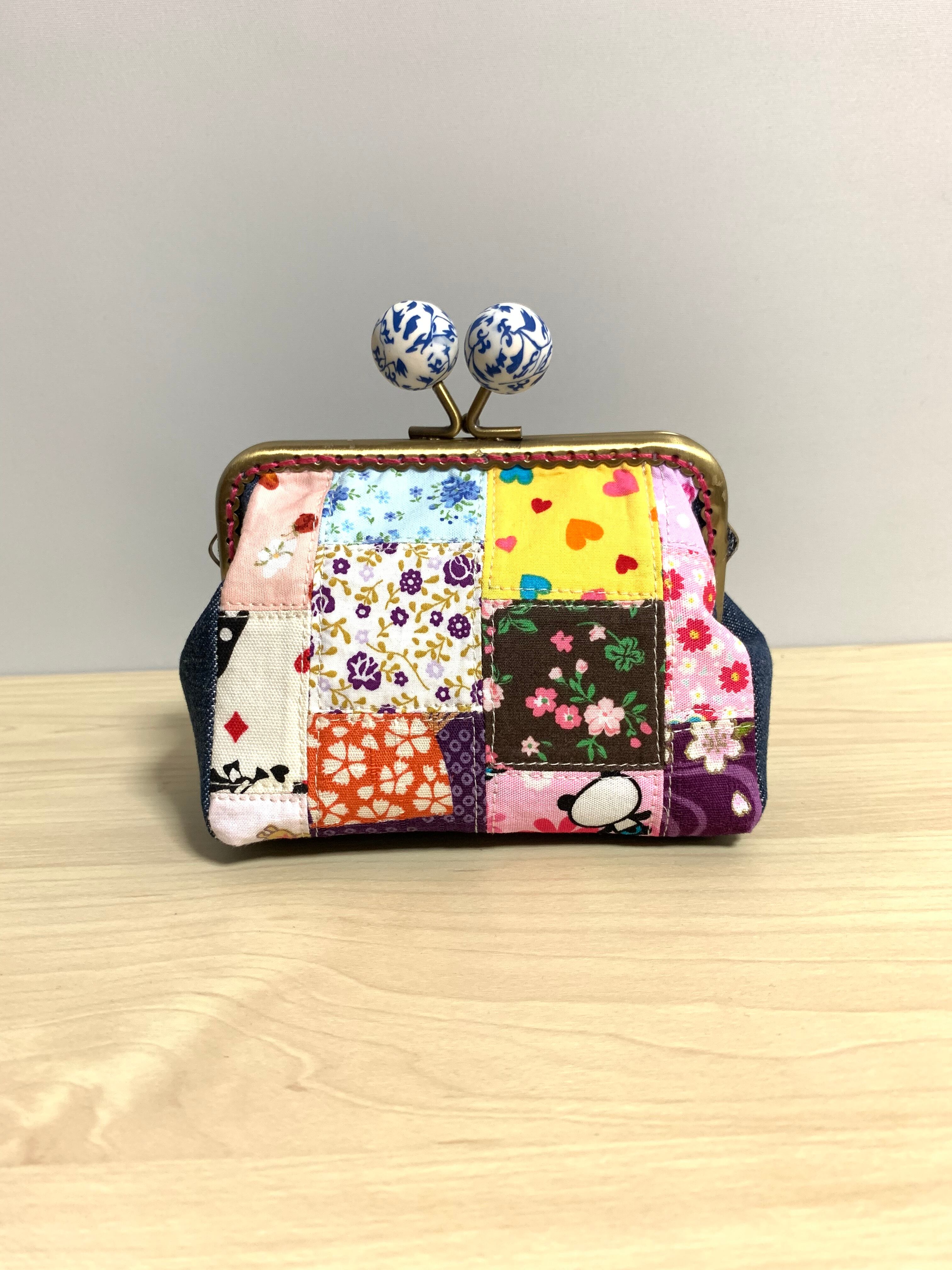 ポップなパッチワークとデニム生地とを合わせて可愛く仕上げました♪