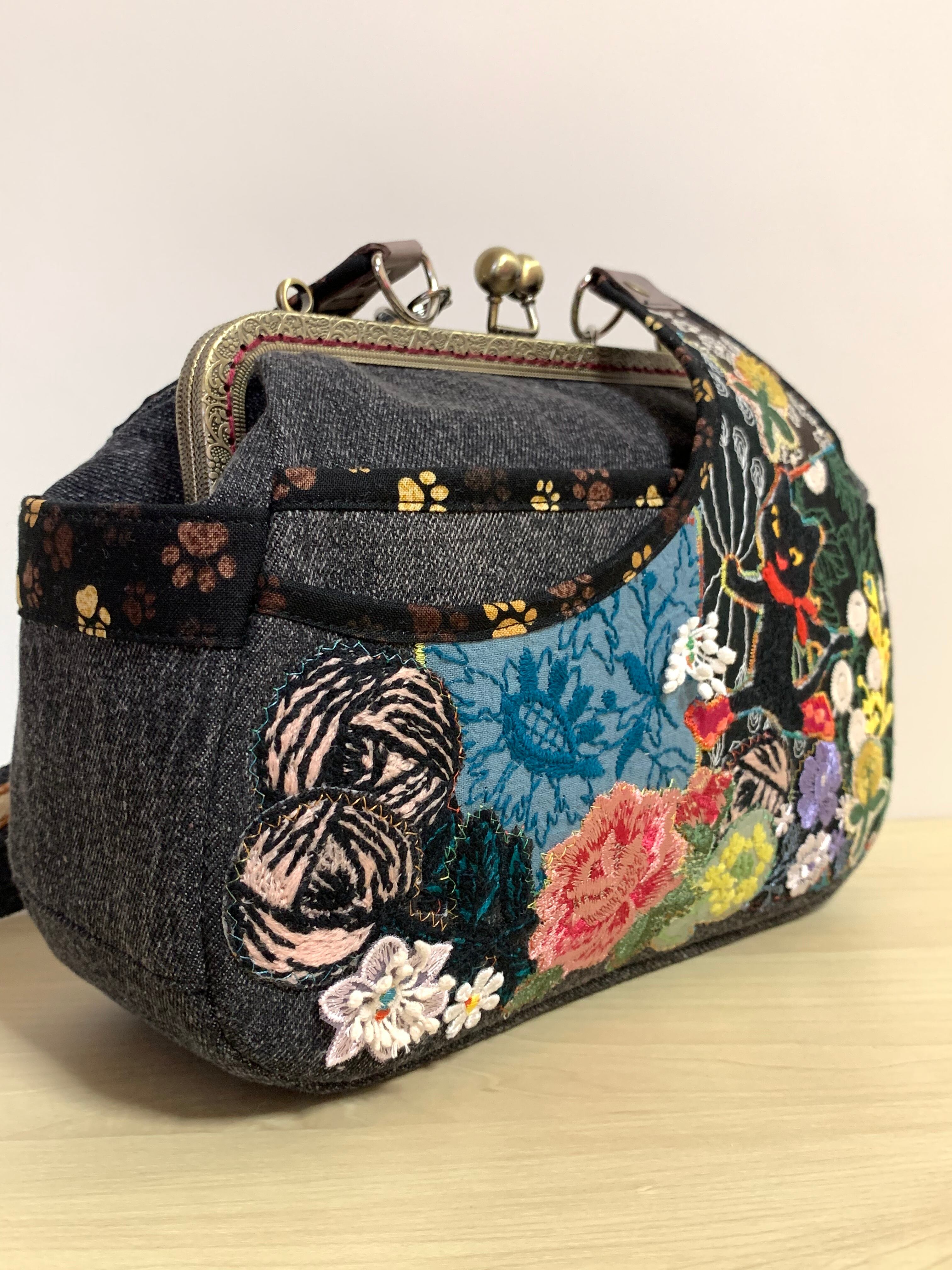 のら猫クロッチ★お花畑に向かう♪がま口ショルダーバッグ♪