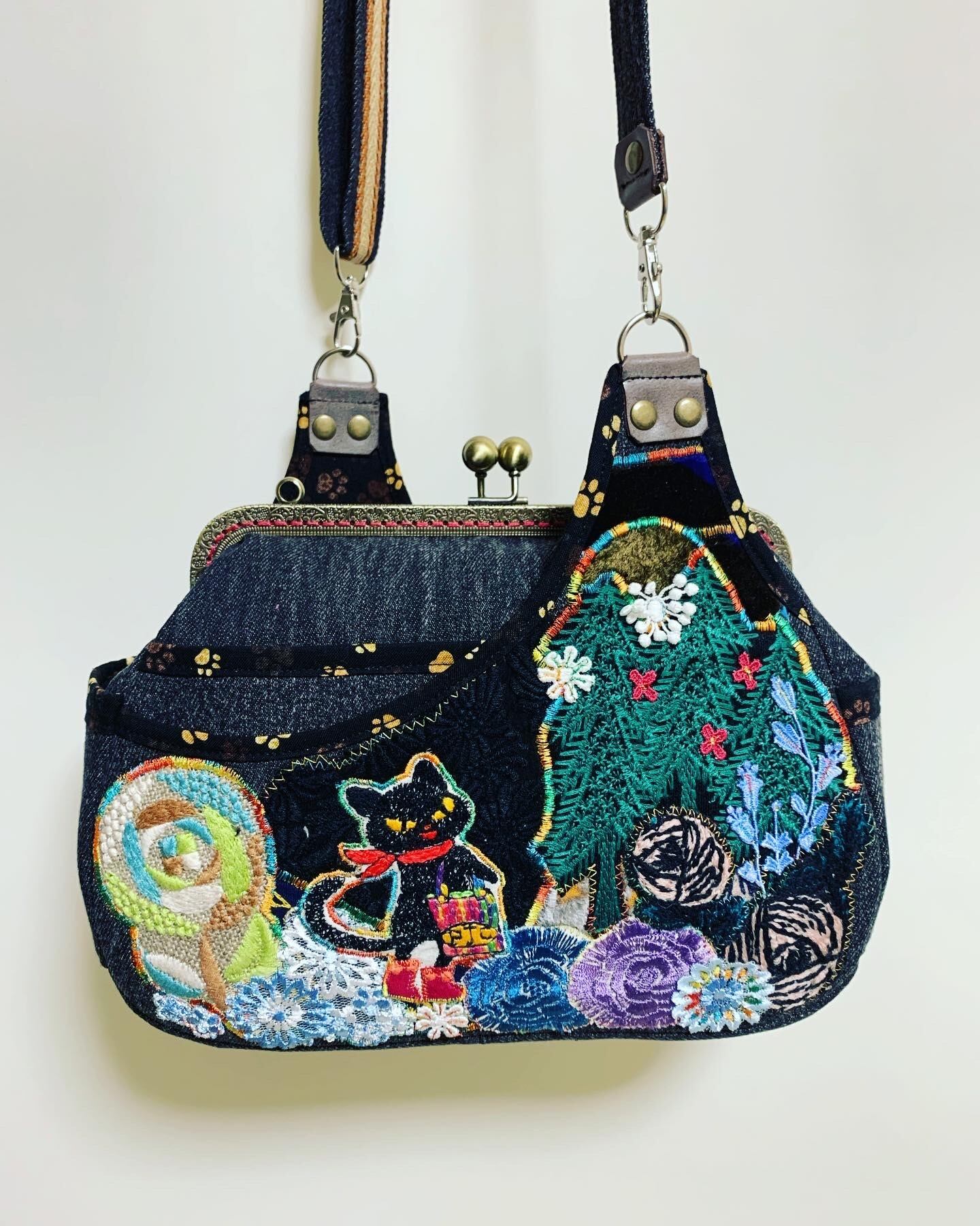 のら猫クロッチ★お買い物に行く♪がま口ショルダーバッグ♪