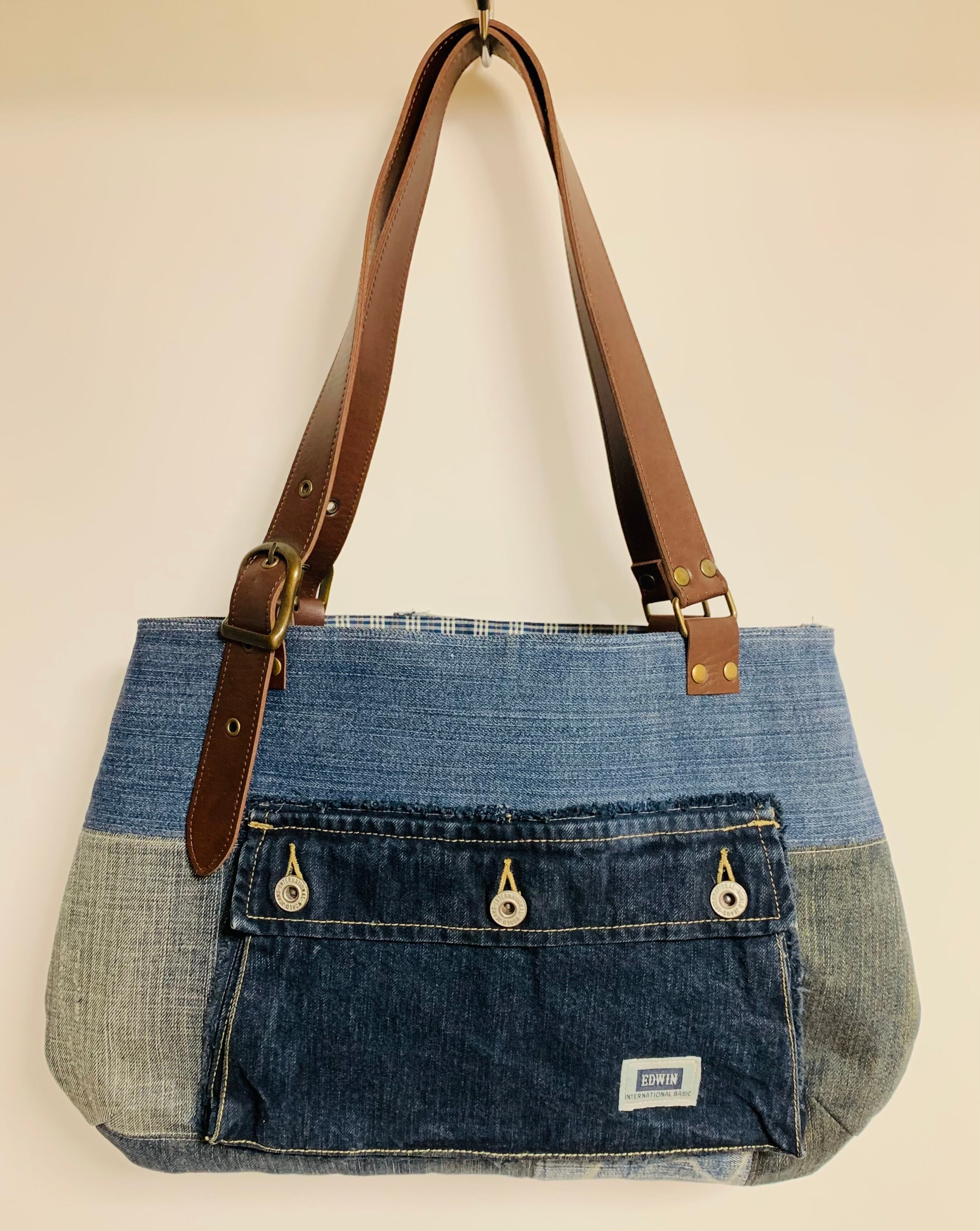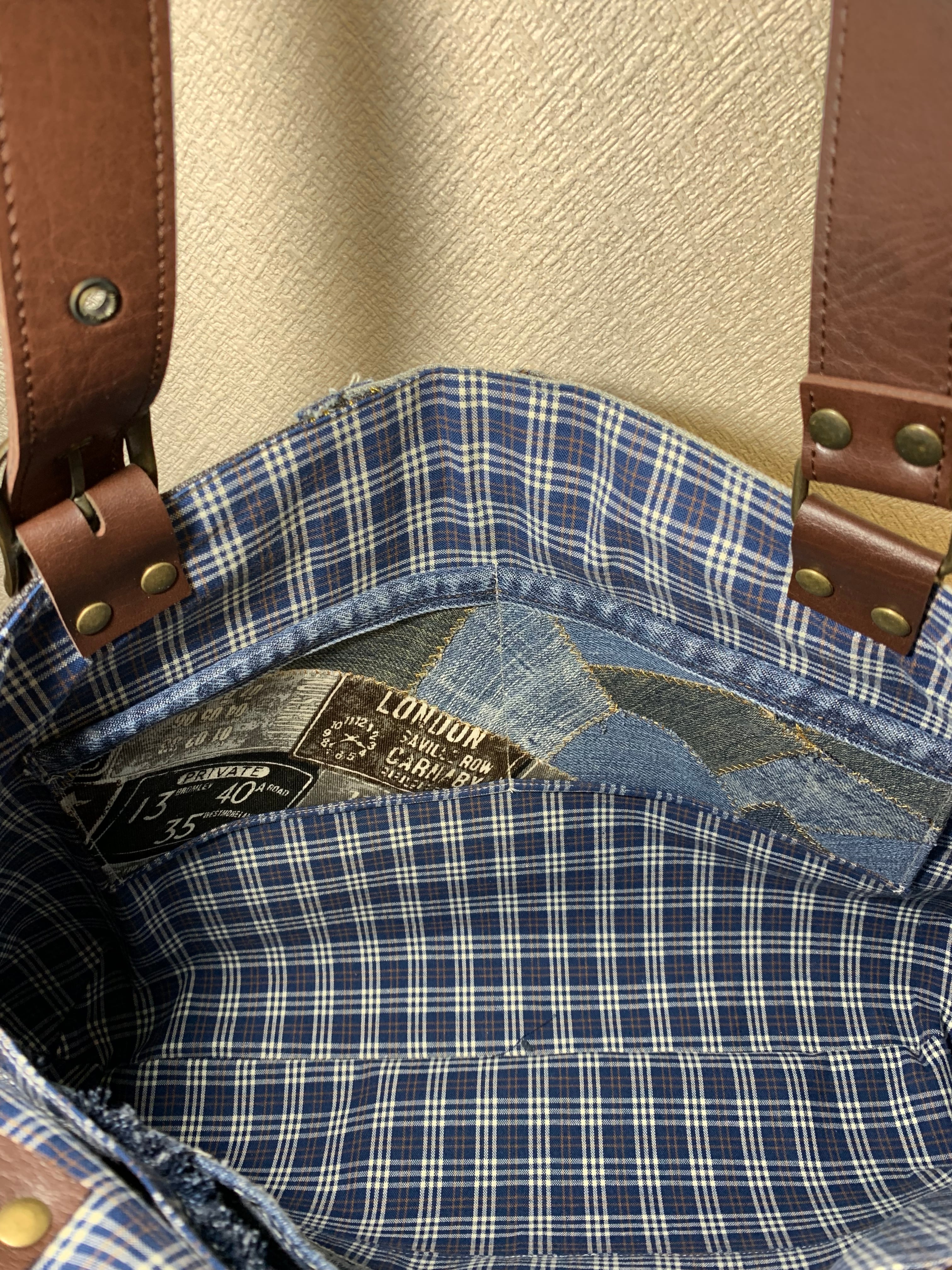 仕切りポケットはいろんなデニム生地と表の柄生地を