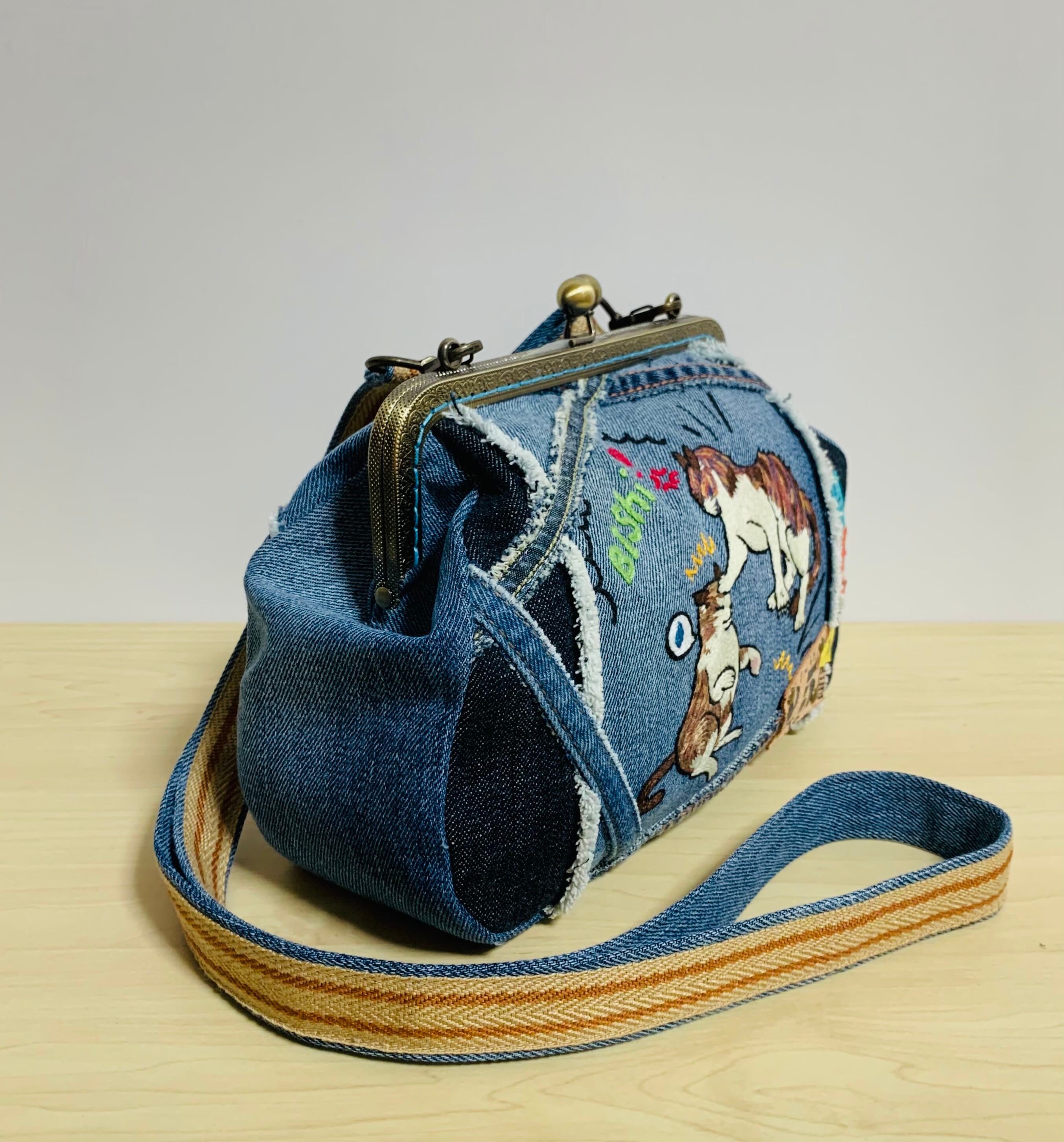 手刺繍:ビしッ!!ねこさんの★がま口ショルダーバッグ♪